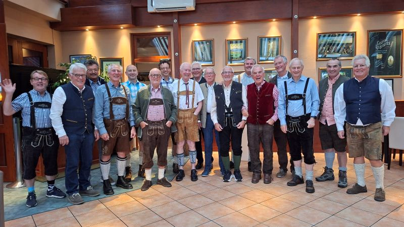 Am Abend folgte das gemeinsame Oktoberfest-Dinner im Clubhaus, bei dem Haxe und Schweinebraten zur Auswahl standen. Ein anschließendes Dessert rundete das deftige Essen ab. Nahezu alle Anwesenden, darunter auch das Clubmanagement und das Gastro-Team, erschienen in Dirndl und Tracht, was der Veranstaltung einen besonders festlichen Rahmen verlieh. Bei passender Musik herrschte eine ausgelassene und zugleich herzliche Atmosphäre.